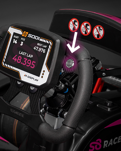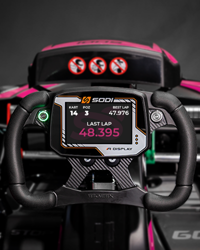 Ekran umieszczony na kierownicy to całkowicie nowa funkcjonalność gokarta! Dzięki niemu przede wszystkim będziesz kontrolować swoje wyniki, nie tracąc skupienia podczas jazdy. Nie będziesz rozpraszać się koniecznością poszukiwania swoich czasów na tablicy wyników. Przy wejściu do gokarta na ekranie zobaczysz swoje imię. W trakcie jazdy wyświetlane będą informacje na temat Twojej pozycji, czasu ostatniego okrążenia, najlepszego okrążenia i straty do lidera. Dzięki sektorowym pomiarom zobaczysz także swoje międzyczasy.