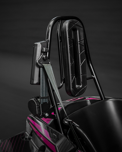 Roll Bar oraz pasy bezpieczeństwa zapewniają najwyższy komfort jazdy. Roll bar (wyższe oparcie) pełni funkcję identyczną jak zagłówek w samochodzie, dba o to by w razie kolizji zablokować nienaturalne ruchy karku. Roll Bar sprawi, że poczujesz się na torze pewnie i bezpiecznie.