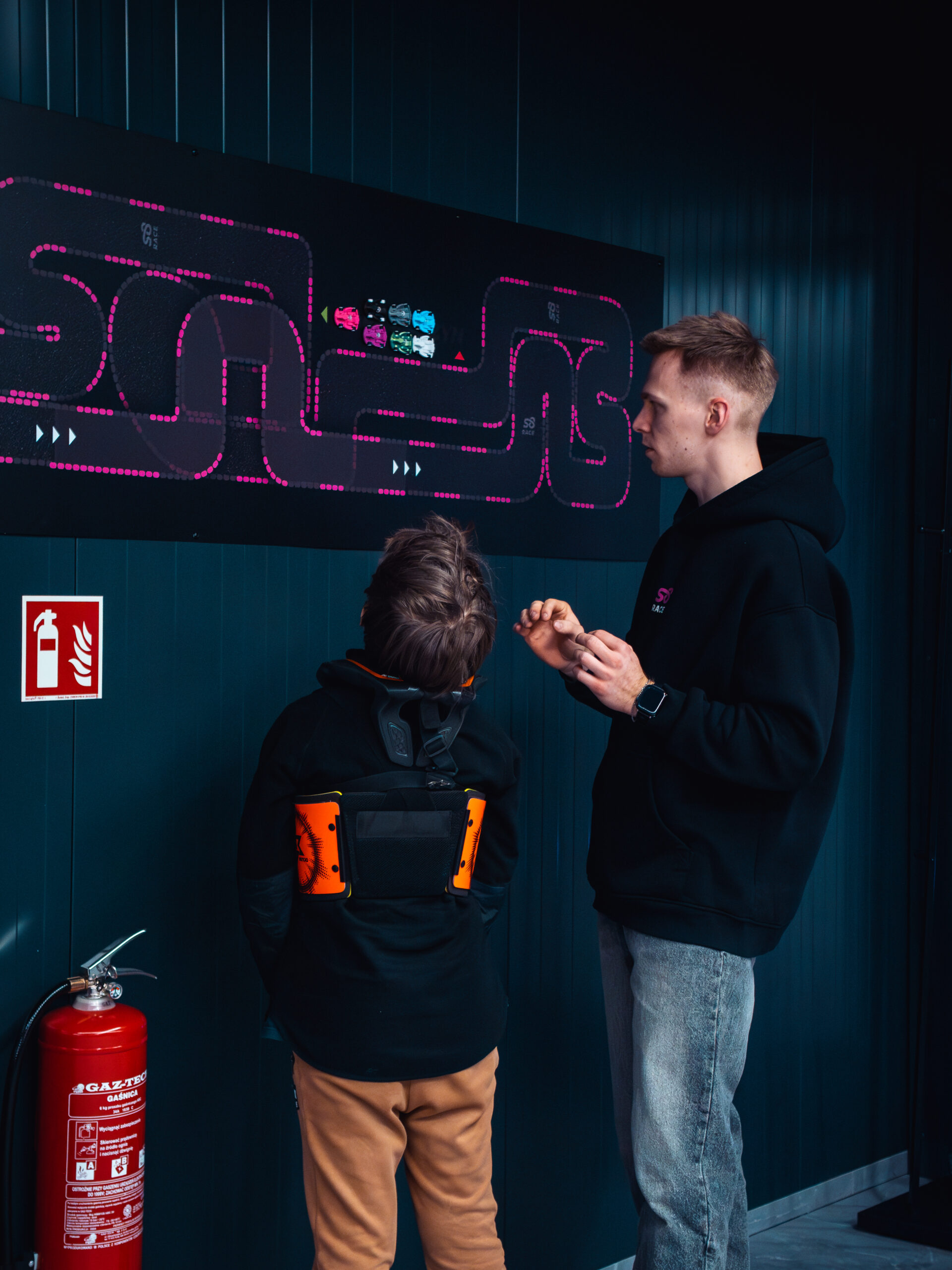 - Oliwier Zalesiński – należy do ścisłej czołówki S8 Race: jest wicerekordzistą toru na obu mocach gokartów RSX i RSX+. Ponad 3000 przejechanych okrążeń przekłada na wyjątkowo precyzyjne wskazówki dotyczące linii, punktów hamowania i pracy kierownicą. Ma już 100+ przeszkolonych osób w formule indywidualnej. Z kartingiem związany jest od wielu lat — pierwsze doświadczenia zbierał jako pasjonat pracujący na torze, po czym został instruktorem i trenerem w profesjonalnym kartingu w serii Rok Cup Poland, gdzie z powodzeniem prowadził swoich zawodników. Obecnie pełni funkcję kierownika toru S8 Race: koordynuje przeglądy, testy i kalibracje floty, dba o stan obiektu i procedury bezpieczeństwa. Równolegle współprowadzi szkółkę kartingową S8 Race — łączy realne tempo nauczania z uporządkowaną metodyką, dzięki czemu progres podopiecznych jest szybki i mierzalny. To instruktor, który buduje wyniki na torze i jakość całego obiektu.